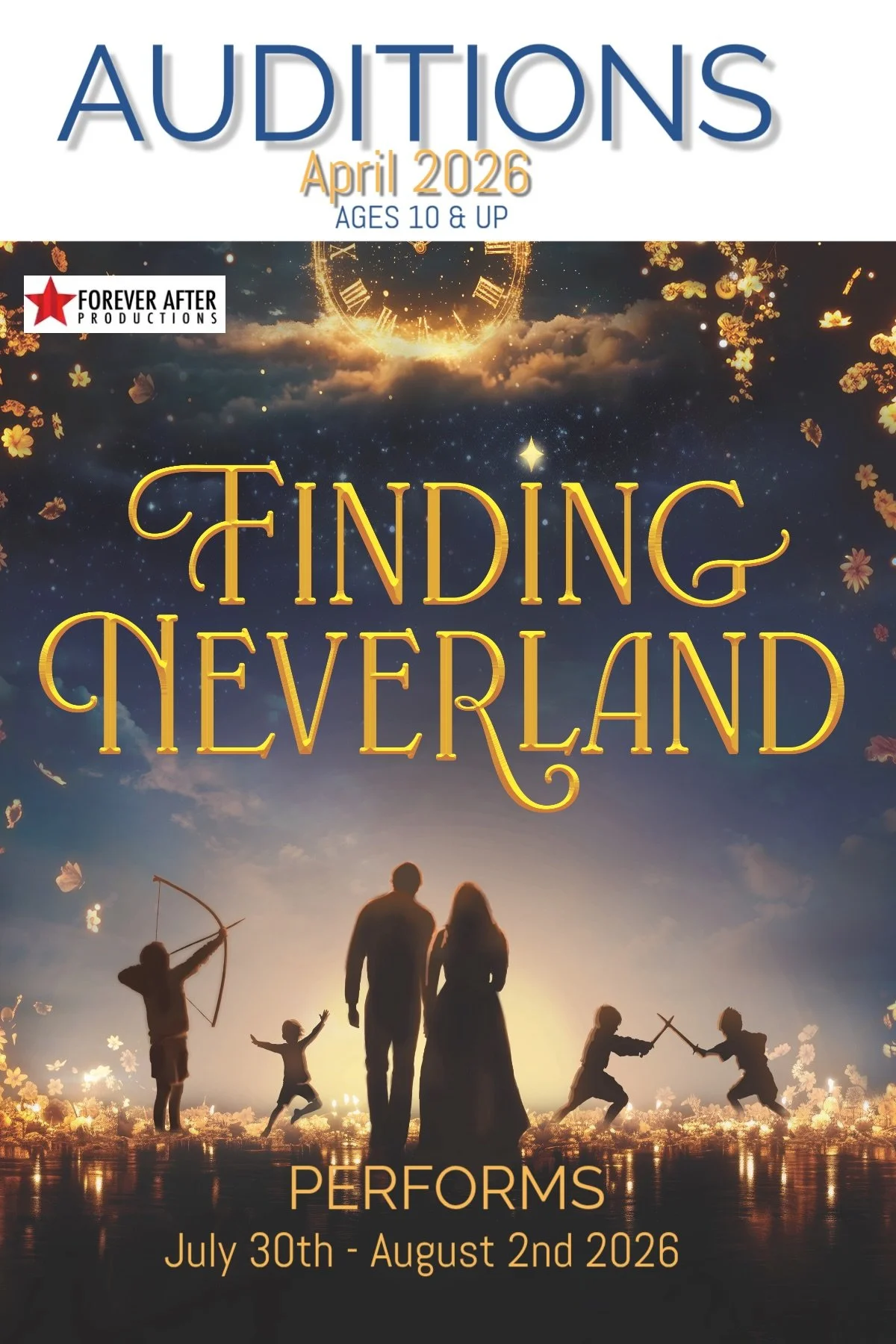 Forever After Productions continues to lead the way in quality performing arts opportunities for children and adults. Through our Productions, Workshops, Classes & Camps we are able to share our love of Theater with you. If you are a performer at heart we have a place for you!